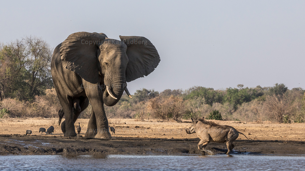 The African elephant is number one of the Big Five. We were lucky to see elephants often – together with their calves and encountering other animals like warthogs (one of the Ugly Five).