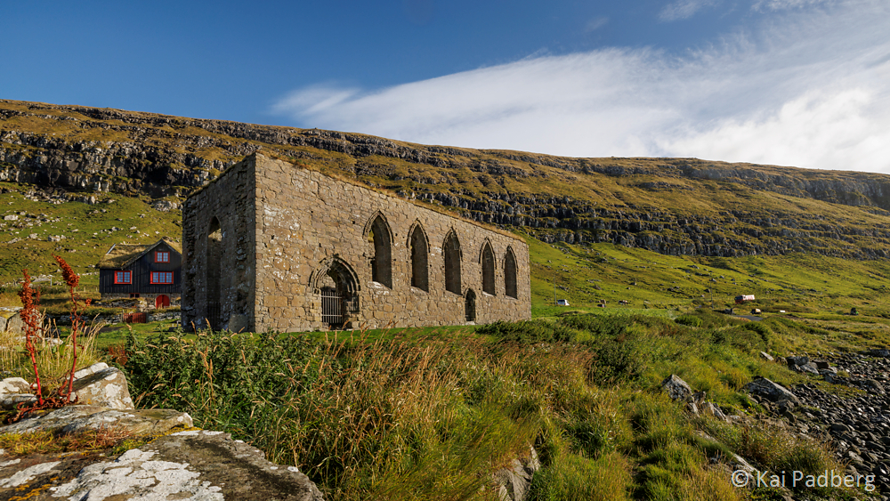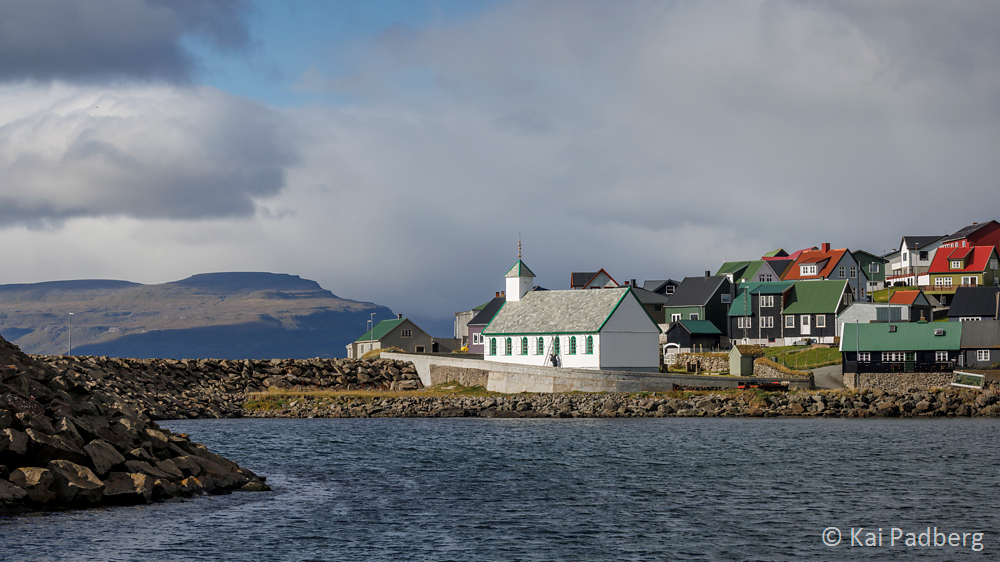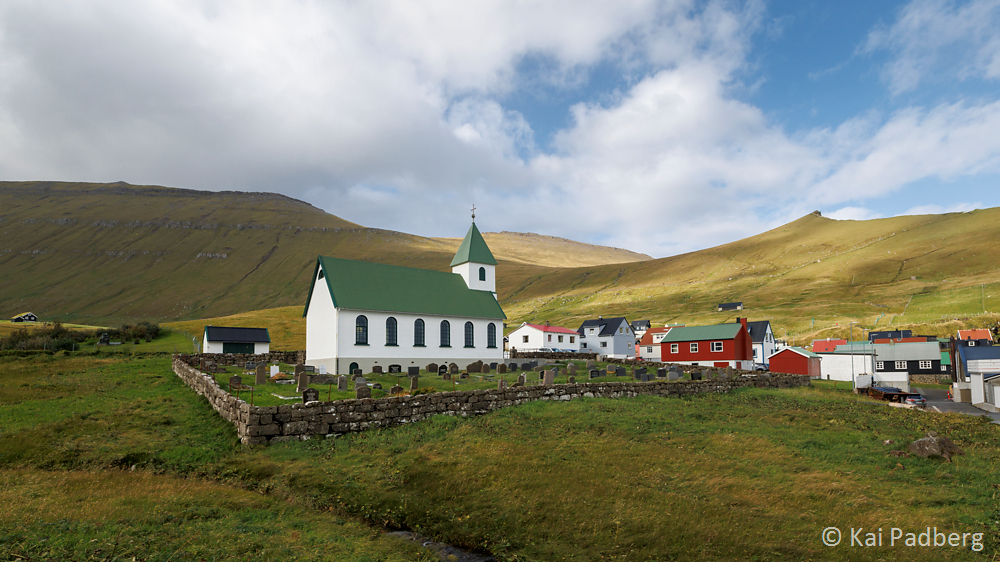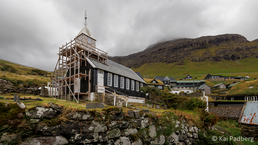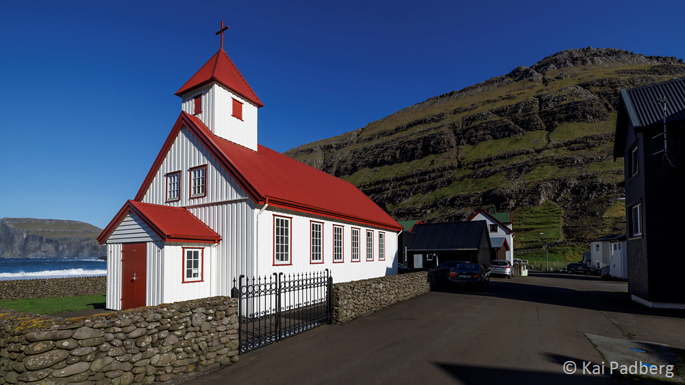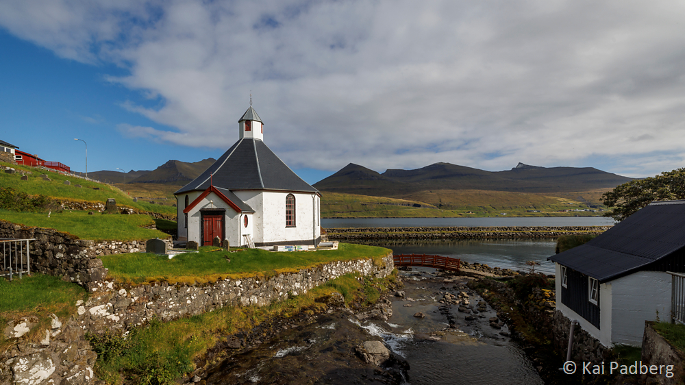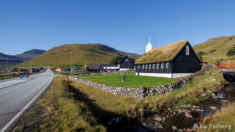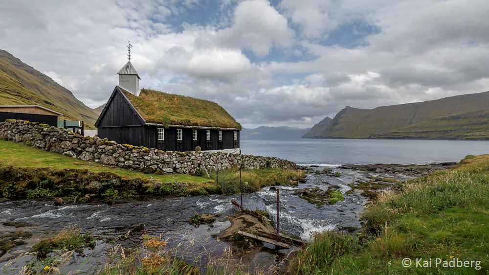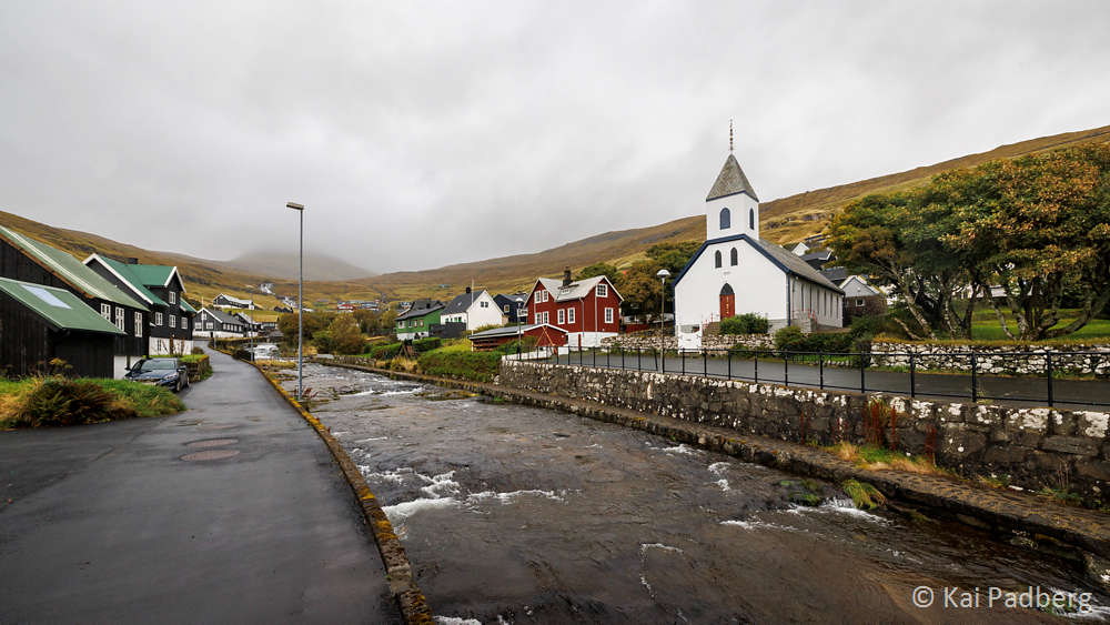 The church in Kvívík from 1903 is located directly at the river Storá. Storá serves as a lifeline since long passed times. Kvívík is one of the oldest settlements in the Faroes. Foundations of Norsemen longhouses were found during construction activities and excavated since 1941. They are publicly accessible.