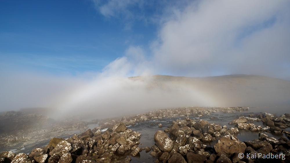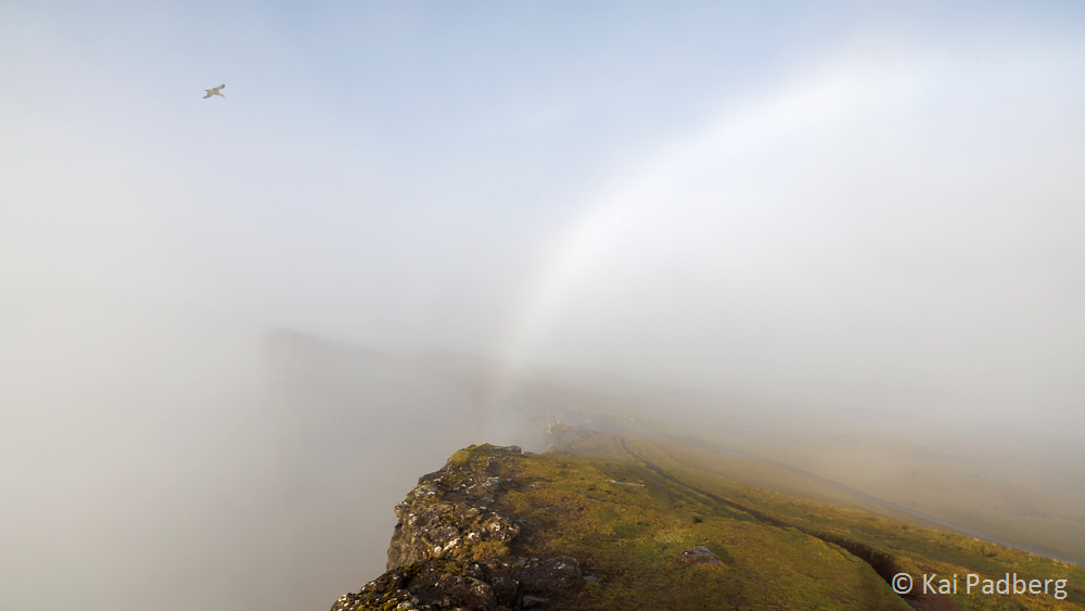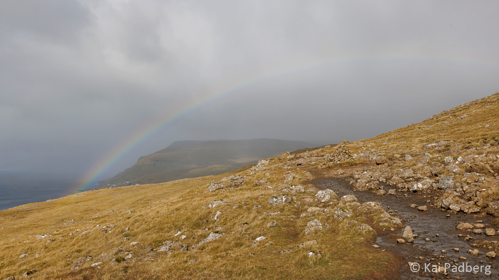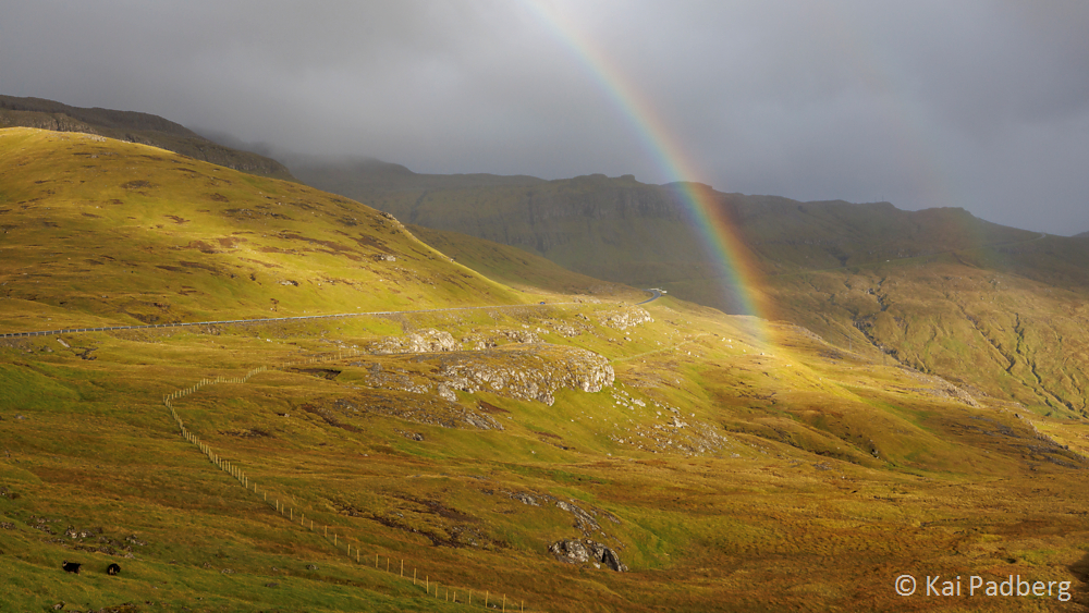 To me the rainbow is the connecting element on the Faroe Islands. It spans over the pass road leading north from Tórshavn. Arriving in Kaldbak and later Kollafjørður the sun shines again on examples of typical wooden Faroese churches with grass sod roofs.