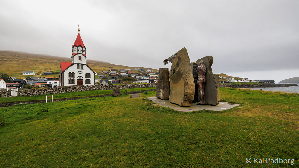 In Haldórsvík a modern memorial reminds of all the seafarers who lost their lives at sea. The octagonal stone church at the same village is the only one of it’s kind on the Faroe Islands.