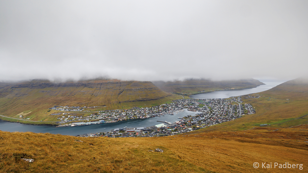 Klakkur mountain (413 m) provides the best view of total Klaksvík.