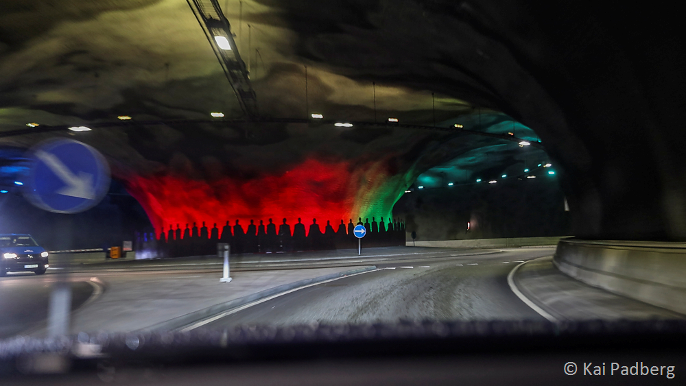 Eysturoyartunnilin (from 2020) with three entrances even contains a roundabout decorated with sculpted metal sheets resembling the Faroese ring dance. One also can listen to a sound installation by tuning the radio to the right frequency while passing the tunnel.