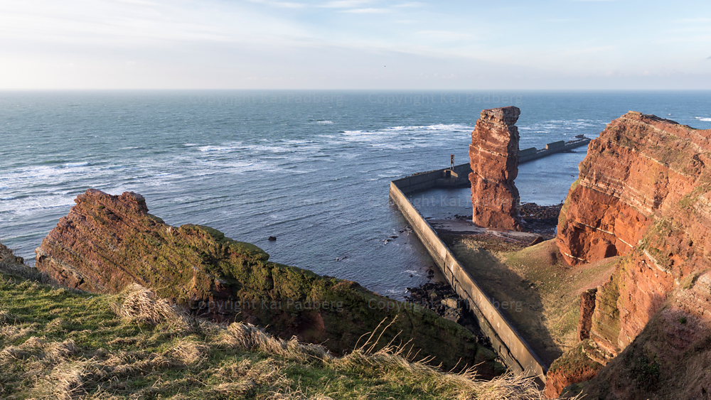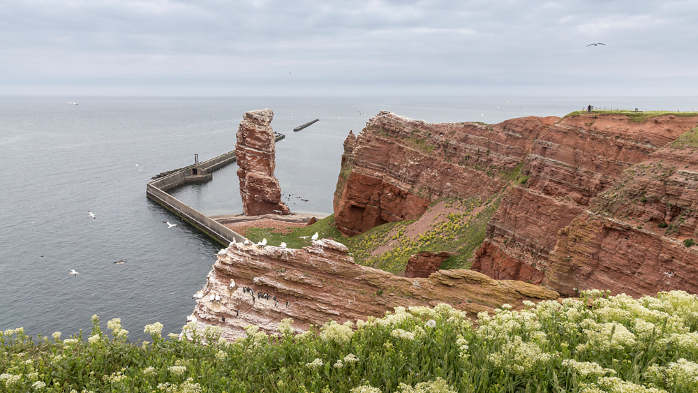 The red cliffs, especially the “Lange Anna” (“Tall Anna”) sea stack are the landmark of Heligoland mainland.