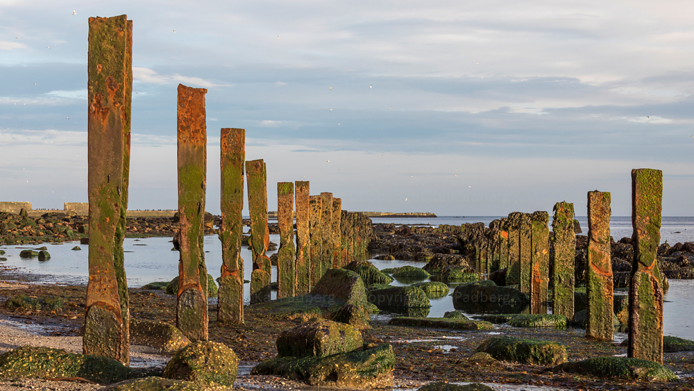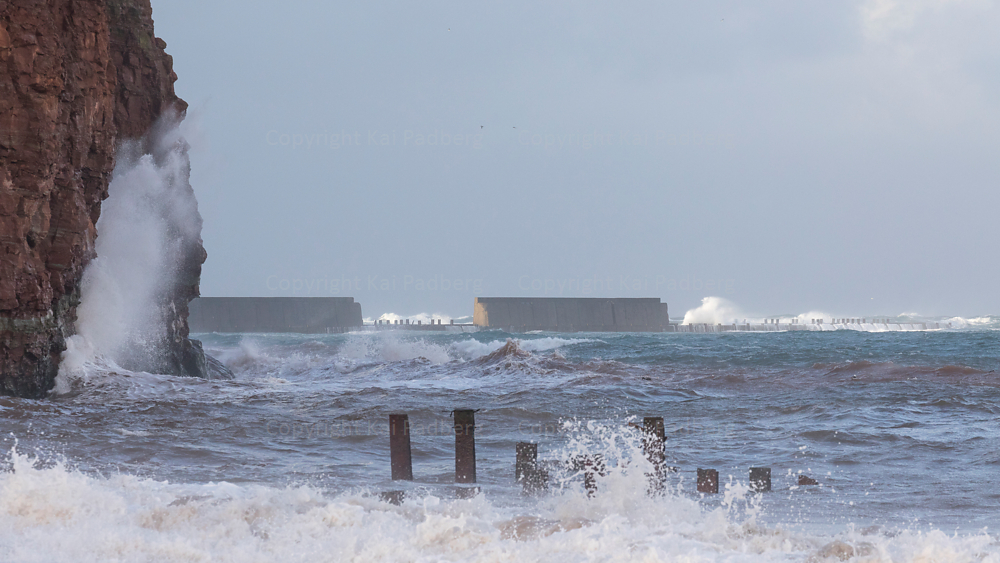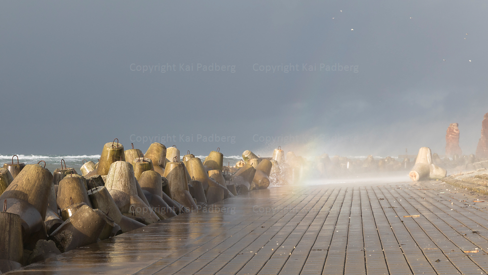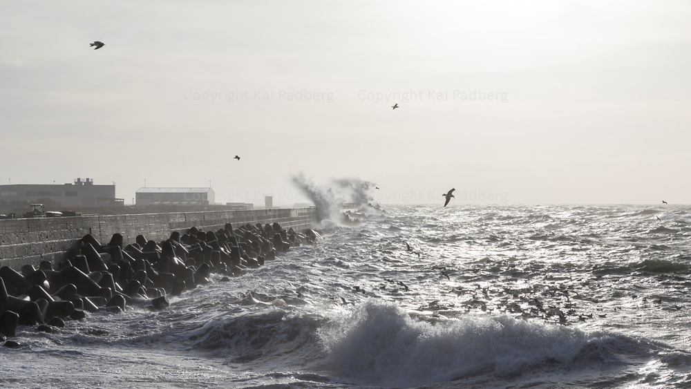 The steep cliffs are exposed to the mainly westerly winds. Coastal preservation is necessary to protect the island. Storm floods and waves lift and move even tons weighing tetrapods.