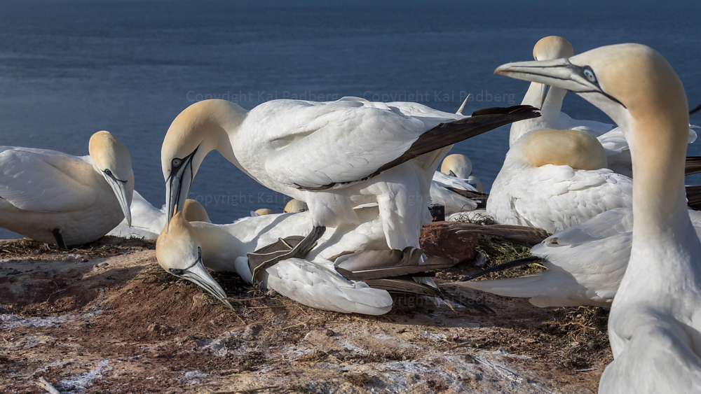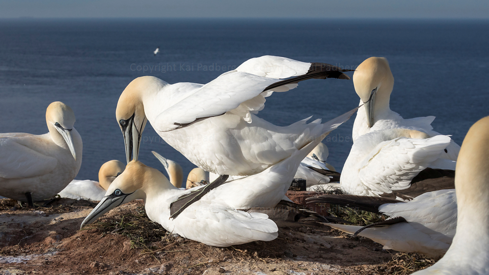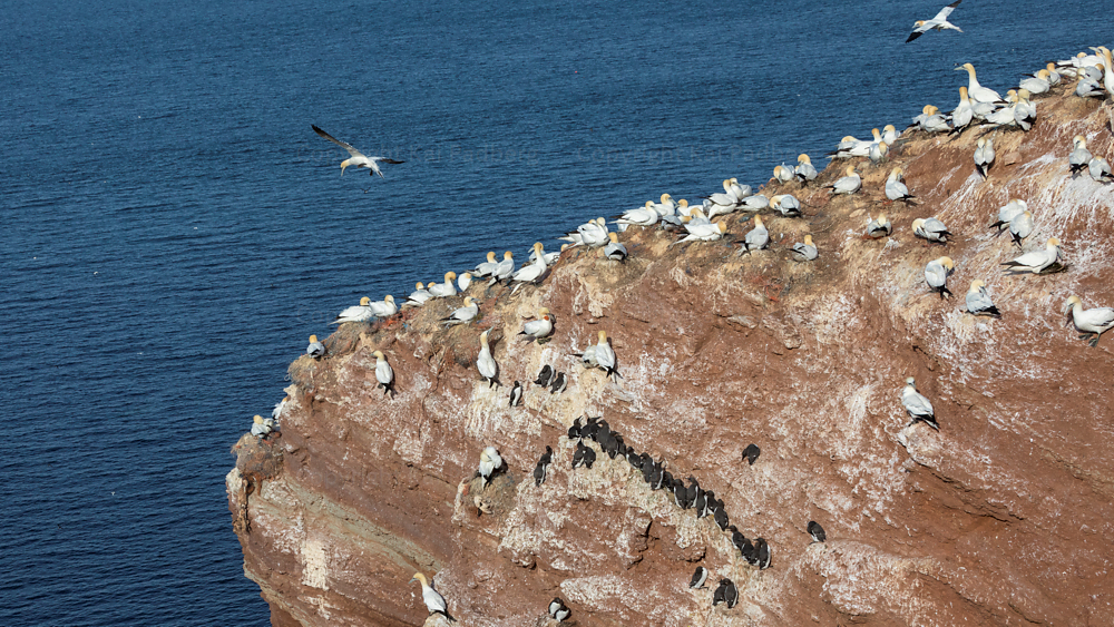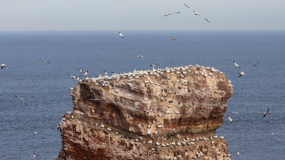 The “Lange Anna” (“Tall Anna”) sea stack is an ideal nesting place for mainly gannets and guillemots. The whole rock is covered with nesting birds.